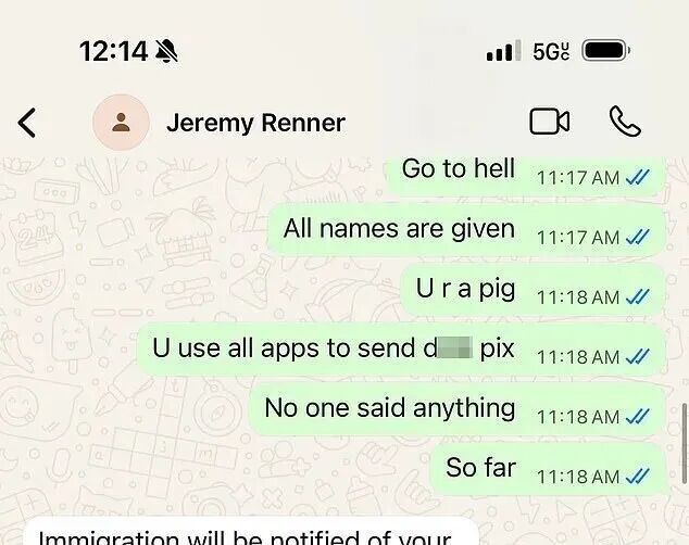 雷纳直接威胁要联系美国移民和海关执法局(ICE)举报她。