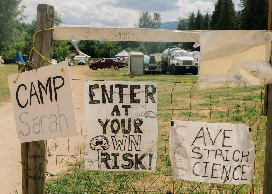 农场开始加固防御,抗议者们开始在鸵鸟圈周围布下绊线,并连接上防熊爆竹,以吓走入侵者。抗议者们给每个人都配备了对讲机,戴夫和凯伦直接就睡在鸵鸟圈里。