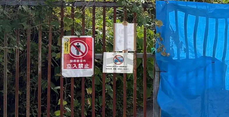 案发现场位于冲绳本岛一个安静的住宅区,大门紧闭,杂草丛生。