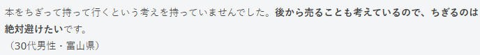 日本媒体对300名18岁以上有阅读习惯的人进行调查。结果显示,只有8人表示会把想看的书页撕下来。