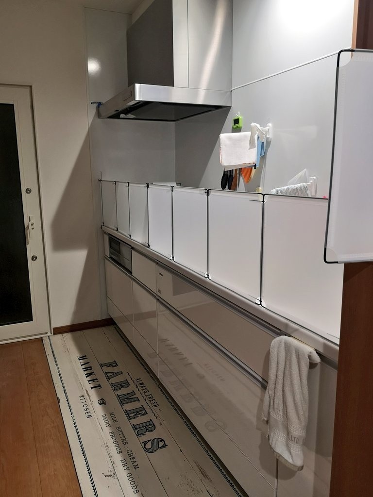 冰箱上方的间隔有点宽,还需要加一根伸缩杆。