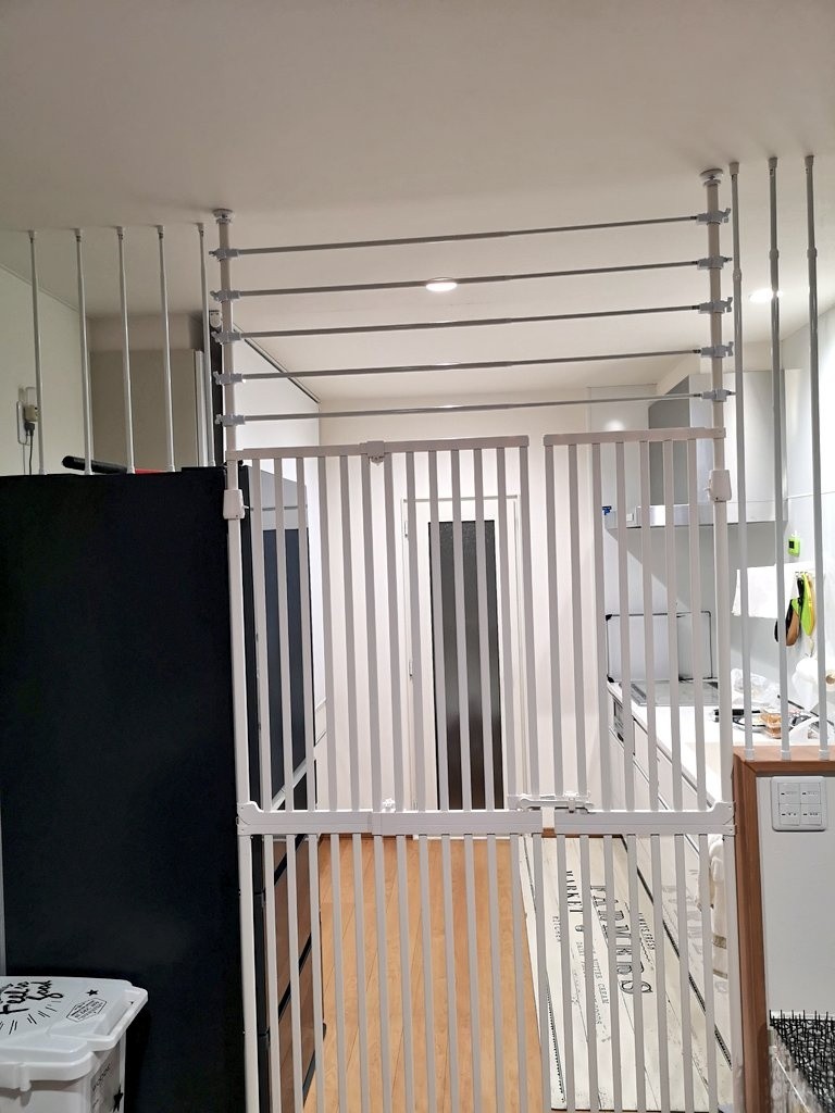 直到最近,铲屎官终于使出了“杀手锏”,先是买了一组猫栅栏,接着又买了多达24根的伸缩杆。