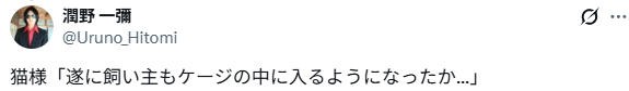 猫咪心想:“所以现在终于是主人进笼子了。”