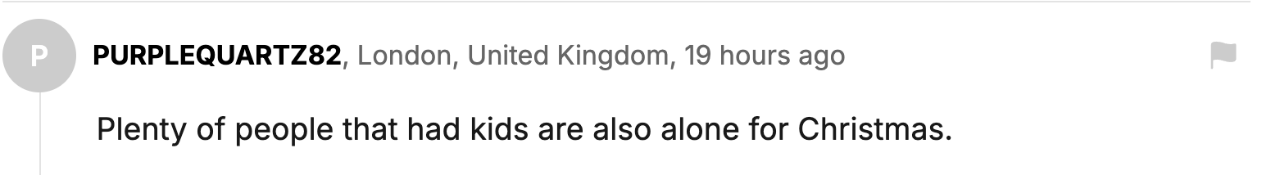 “无数有孩子的家庭也是孤独的度过圣诞节”。