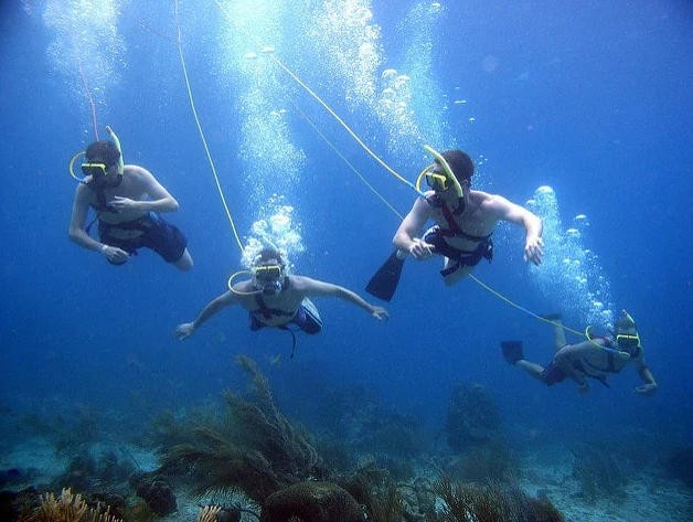 这里要稍微科普一下,在我们印象中,潜水好像都是自己背着氧气瓶,好像完全没可能被船切断氧气管。
