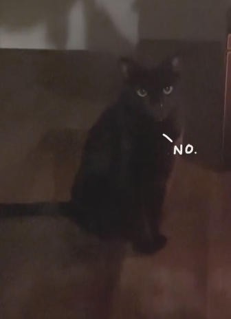 拍摄者哭笑不得,就连她家的猫看到这一幕也不太高兴……