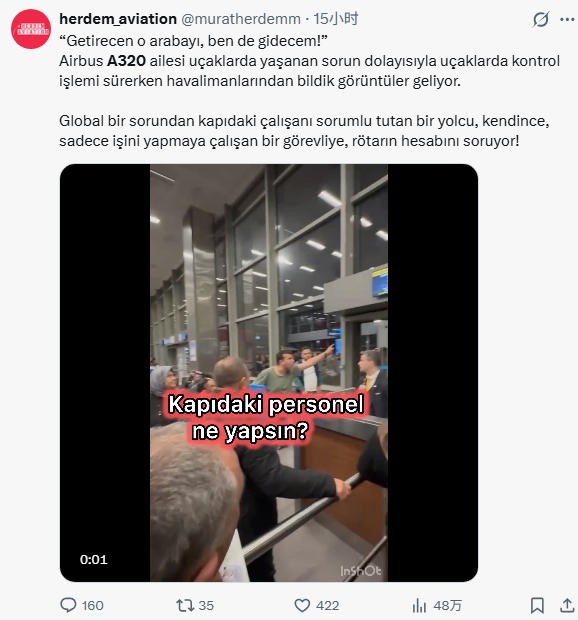 在Reddit平台上,一名本应该乘坐A321飞机的乘客发帖称,现在土耳其伊斯坦布尔机场挤满了准备降落的飞机:“机长说地面上有很多飞机,我们不知道还要等多久才能离开。”