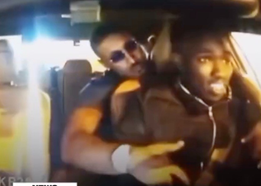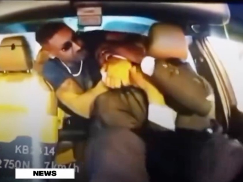 Kiplimo不停地推乘客的手,两人扭打在了一起。