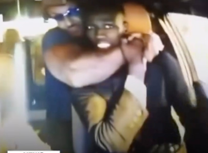 说完,乘客双手扯着Kiplimo的脖子,狠狠地往后拽了好几次。