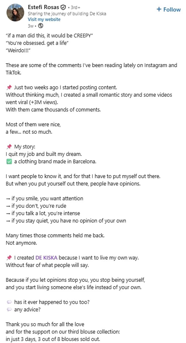之后的几天,Rosas又接连发了几条视频,回顾这段转瞬即逝的恋情。可渐渐,安慰她的留言越来越少,取而代之的是各种质疑。