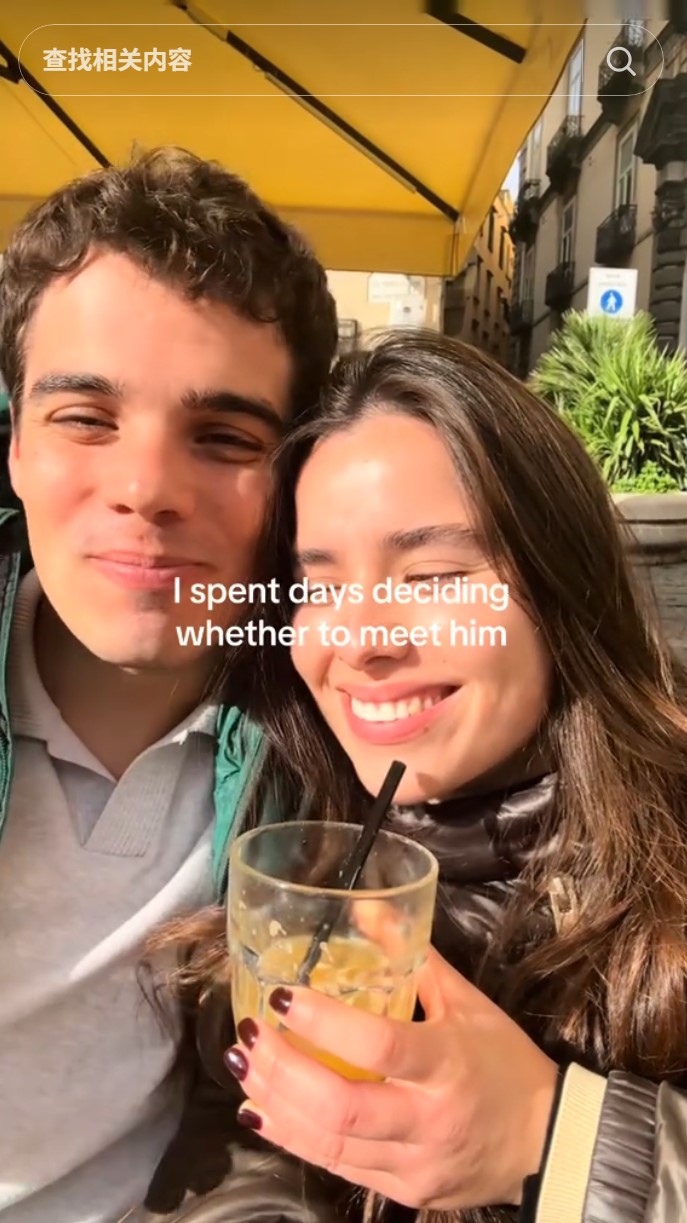 对方是一个留着黑发的帅气小伙,但站的太远,Rosas不便跟他搭话,只能偷偷拍下他的样子,暗自期待他能回头看自己一眼,结果下一秒,男孩真的看向了她,还露出温柔的微笑。