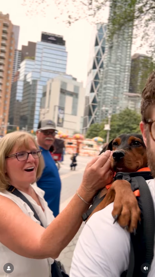 他准备了一个特殊背包,上面写着“领养我”三个字,接到狗狗后,专门带去人流量大的地方展示,比如地铁、中央公园或时代广场等。