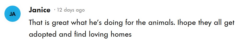 “他为动物们做的事真了不起。希望狗狗们都能被领养,找到充满爱的家庭。“