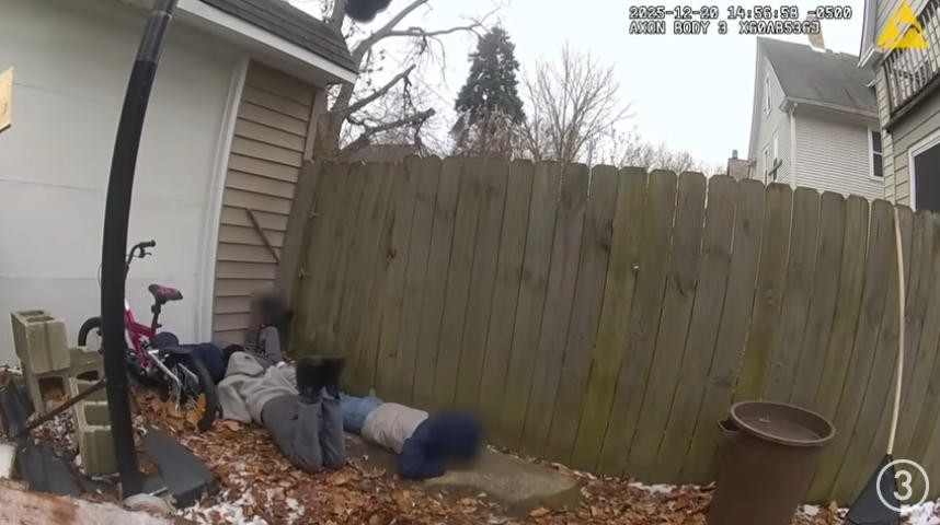 执法记录仪拍到的视频中,警察命令他们待在原地,三个孩子一直在哭,恳求警察让他们给父母打个电话。