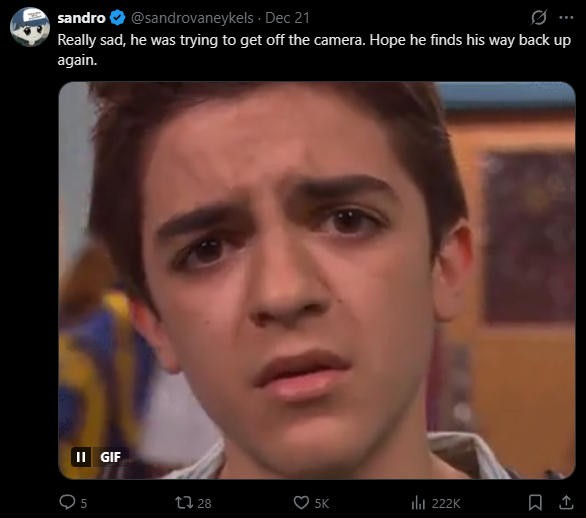 “真是悲伤,他想要躲避镜头。希望他尽早爬出来。”