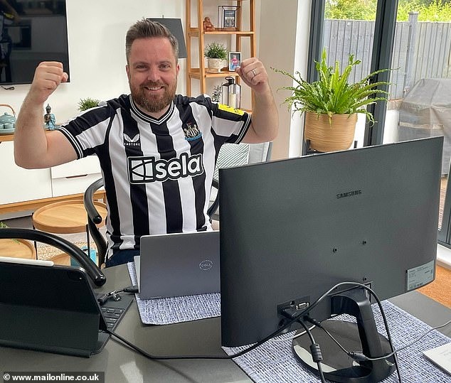 为了庆祝,他还特意在家族群里分享了一张他穿着纽卡斯尔球衣的照片。