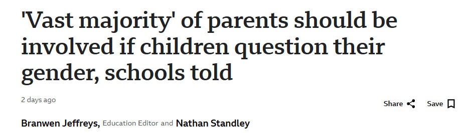 比如最新方针规定,学校得知学生想改变性别时,应该征求家长的意见,并持续考虑家长收到的临床建议。