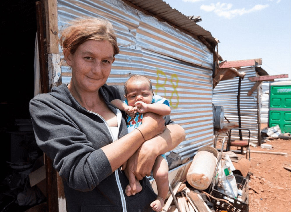 现在有超过40万的白人住在类似于这种寮屋营地的地方,每个月仅靠着大约28.99镑(约260人民币)勉强生存。他们的数量,占南非全国白人数量的10%….