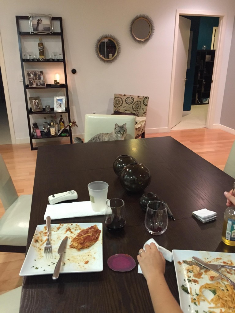最近Imgur上一个网友表示,她家喵其实已经这么干了一年了,每一天,只要有人坐在餐桌上吃饭,她家喵就会跑过来视奸