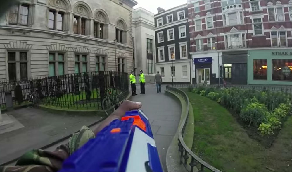 有时也有更过分的….. 拿玩具枪当街打警察…