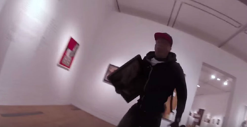 画廊的其他人以为遇到真的劫匪,开始向外逃窜。。。