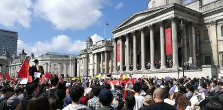 英国华人现场应援!应援对象:阿中。应援物:国旗,应援歌:国歌
