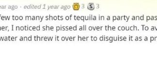 Reddit网友分享了一波“善意的谎言”:为了掩盖女票喝醉后小便失禁,男票假装恶作剧往她身上泼了一桶水……