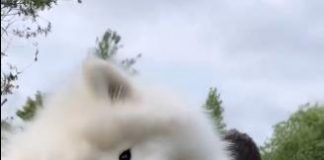 铲屎官背着萨摩出门吓坏网友:这是只背了个狗头吗?!